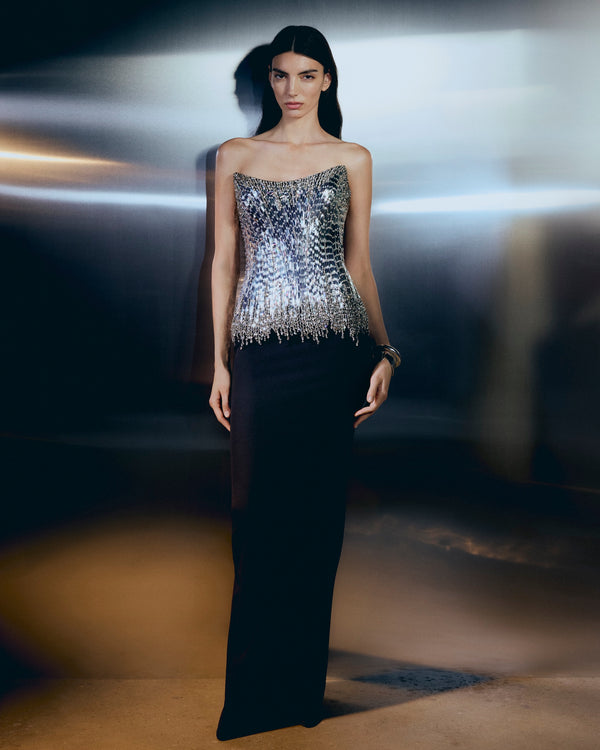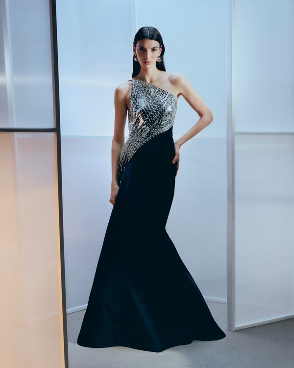 Textures and tones reflect the spirit of the season: lustrous satin, radiant crepe and metallic embroidery that glows under candlelight. From sculpted gowns to sparkling cocktail dresses and sharply cut separates, the collection transforms dressing up into an art form.