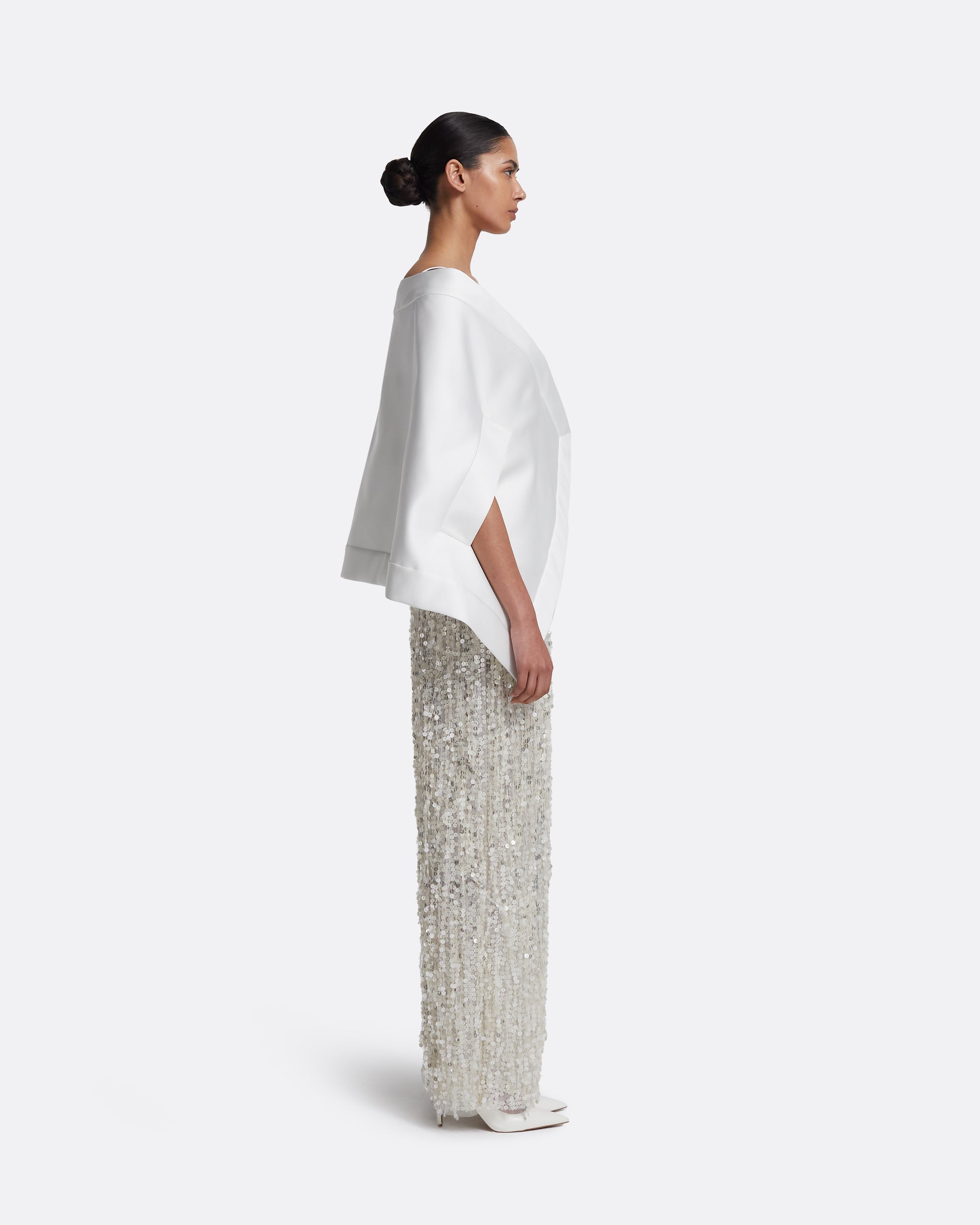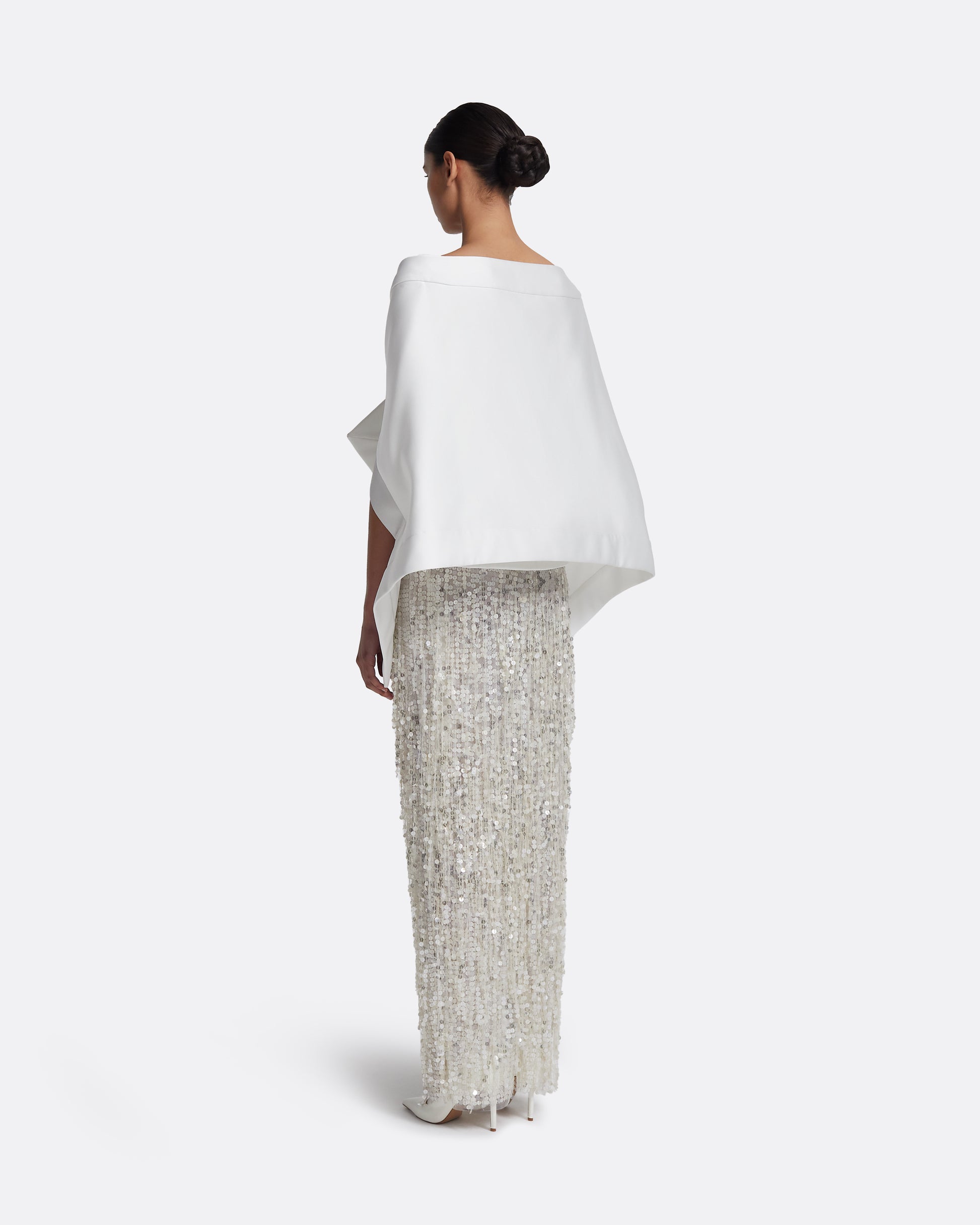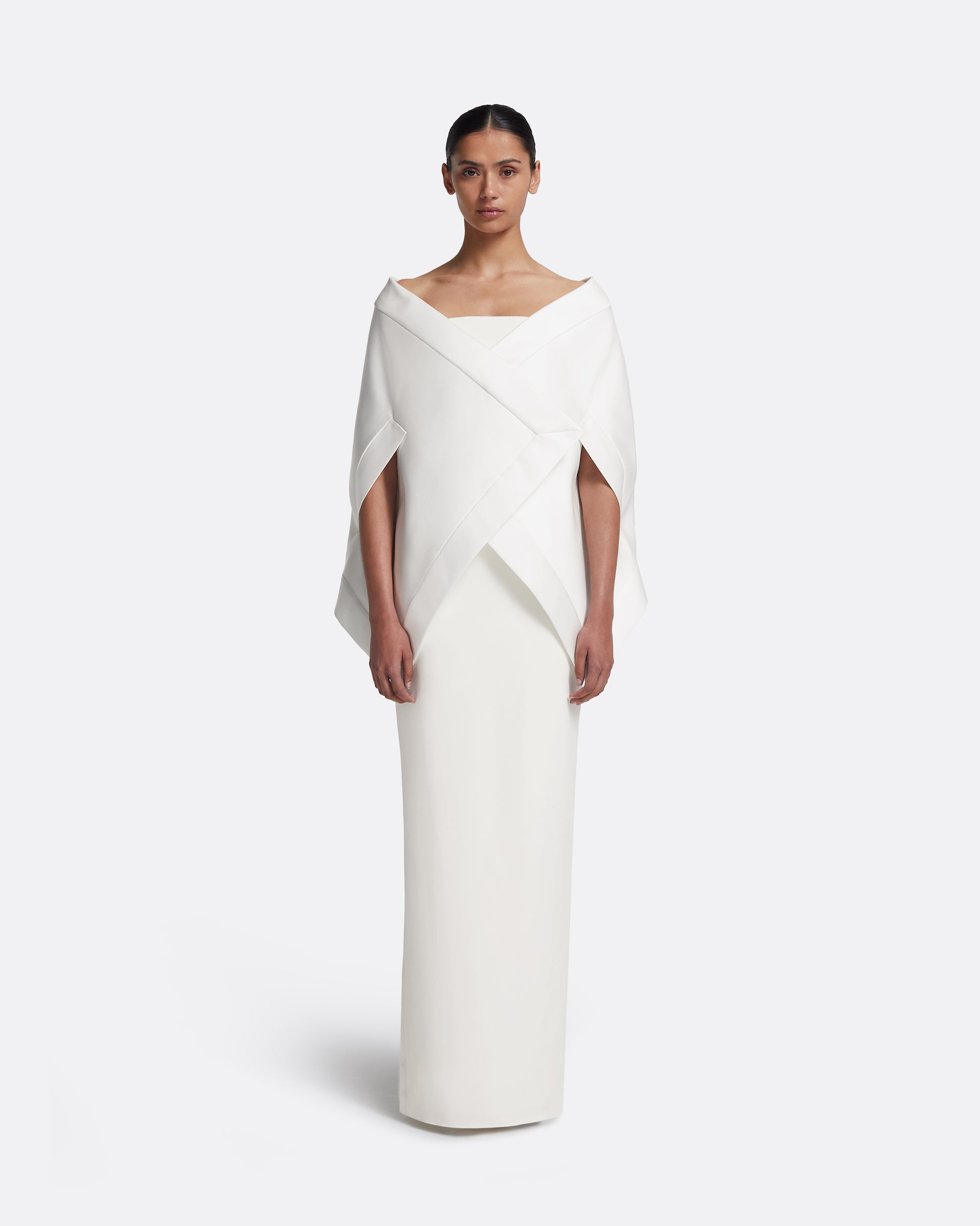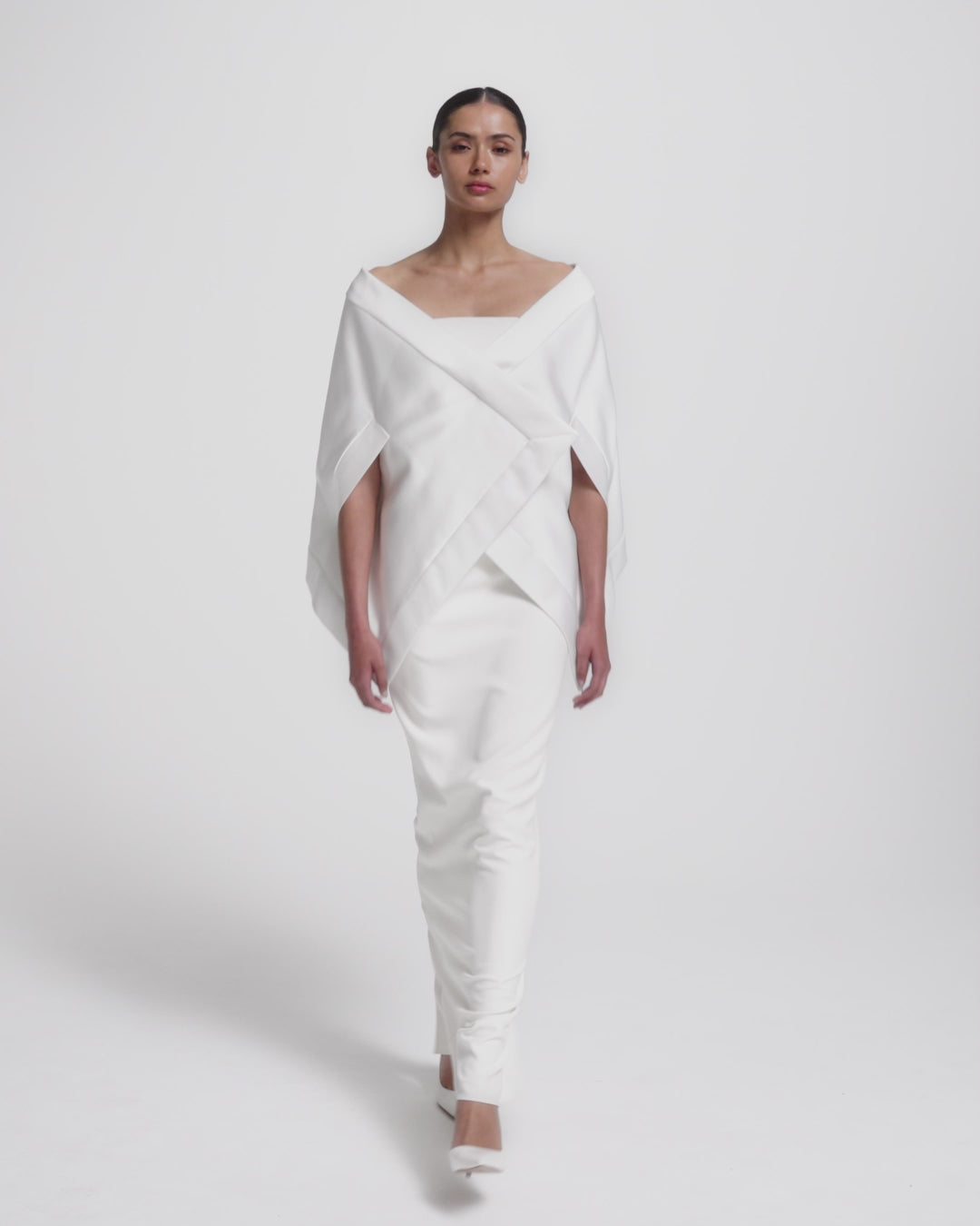 Styled with the Saori and Azrael long dress in ivory. Fits true to size. Model is 175cm | 5'9" and wearing a FR36