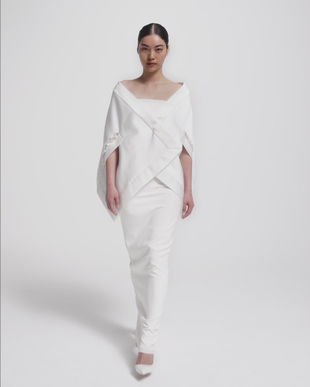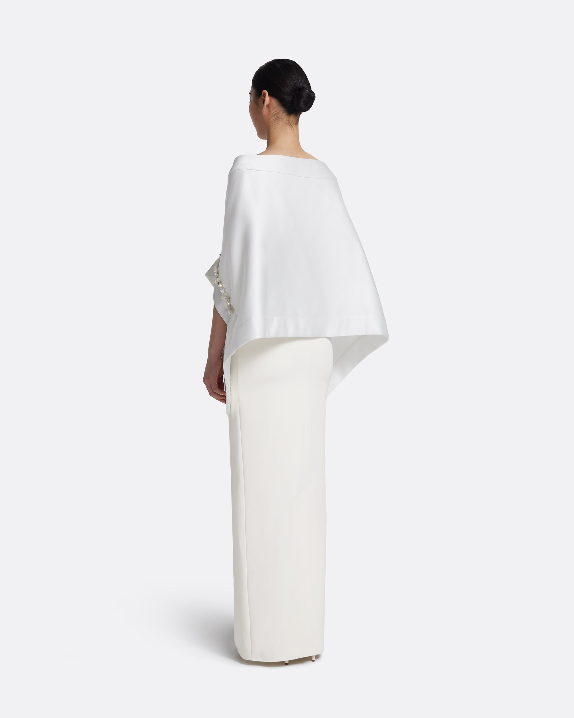 From the Bridal '26 collection, the Akari harness in porcelain introduces sculptural layering with a soft, cocooned shape. The draped shawl detail adds quiet drama, making it an expressive addition to structured foundations.