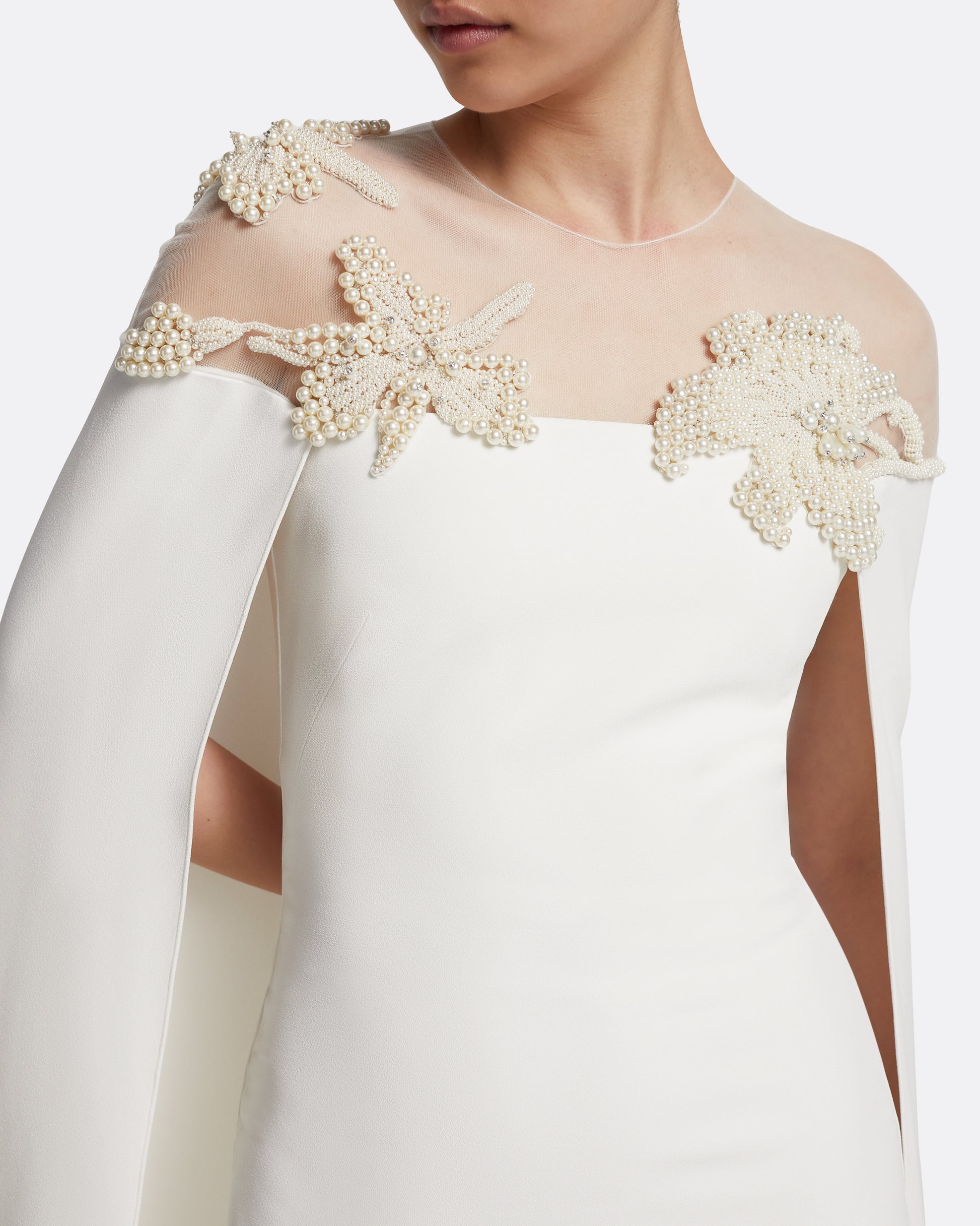 Ambere Long Dress in Ivory with Pearl Embroidery