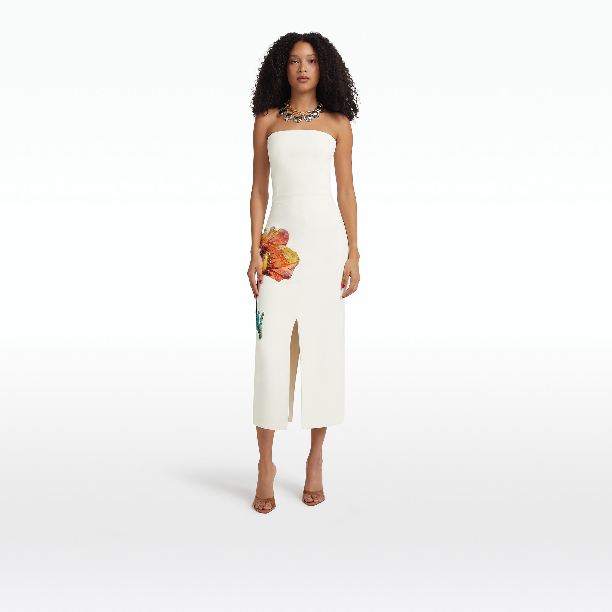 Cropped, bustier top with straight neckline in ivory Heavy Crepe.