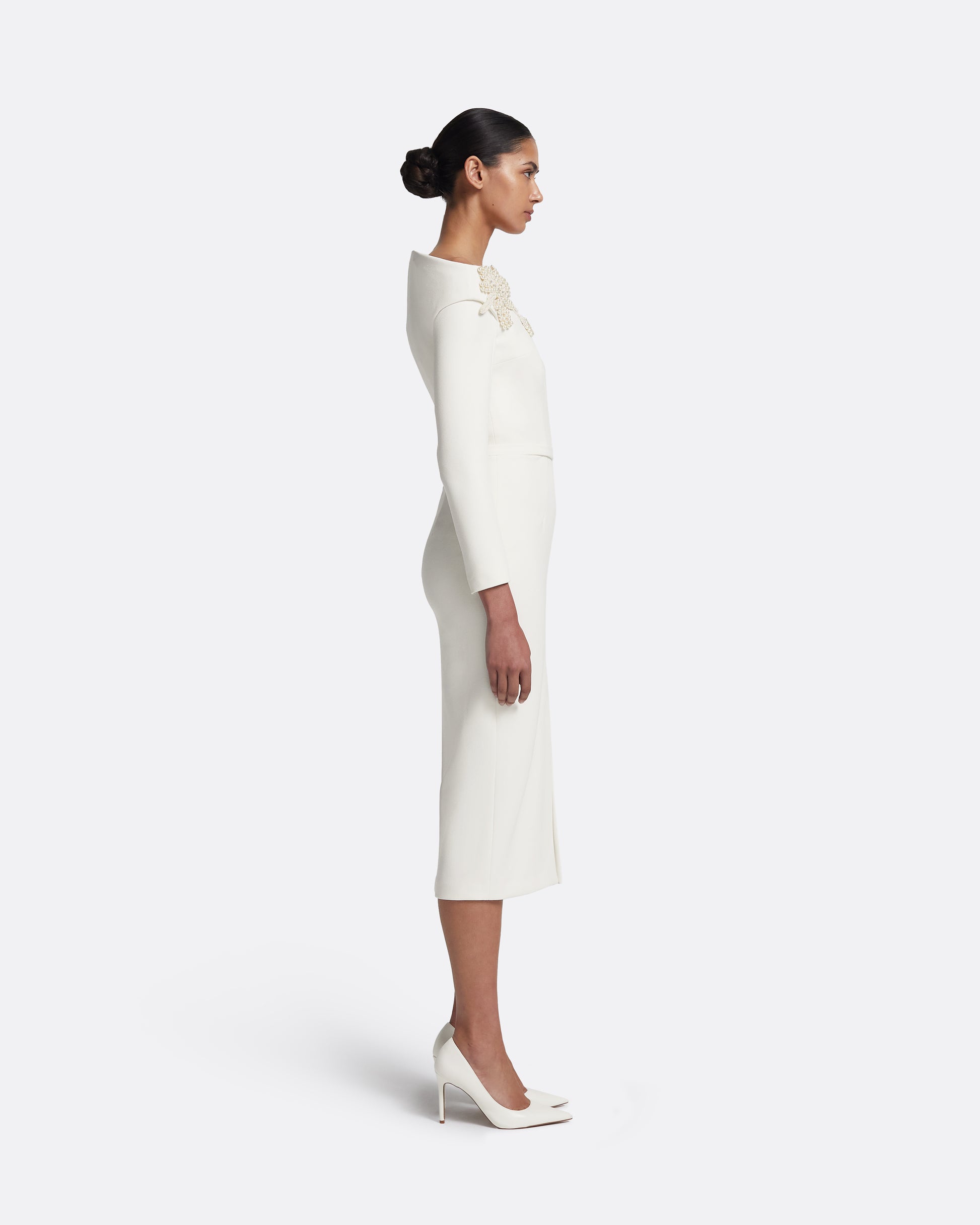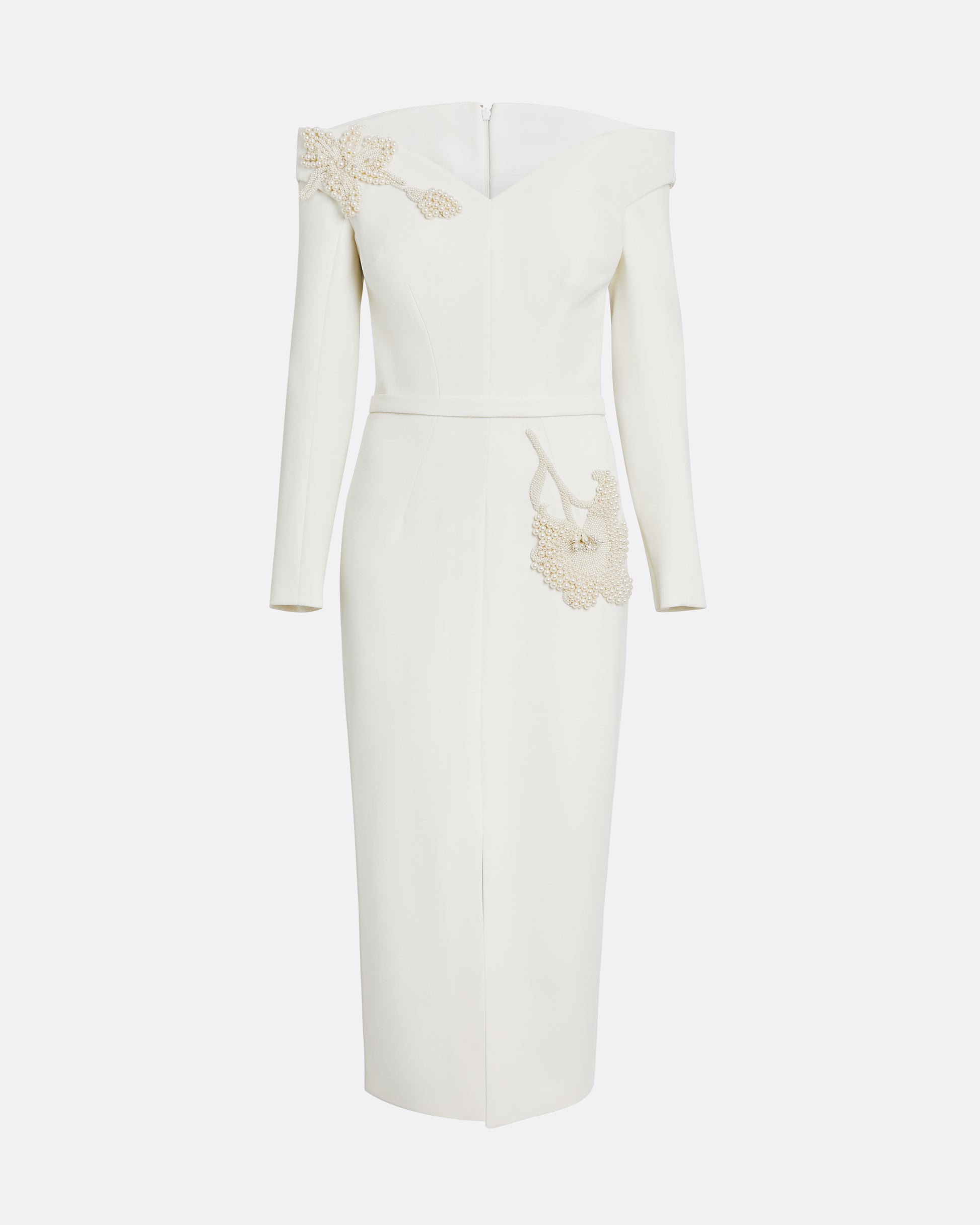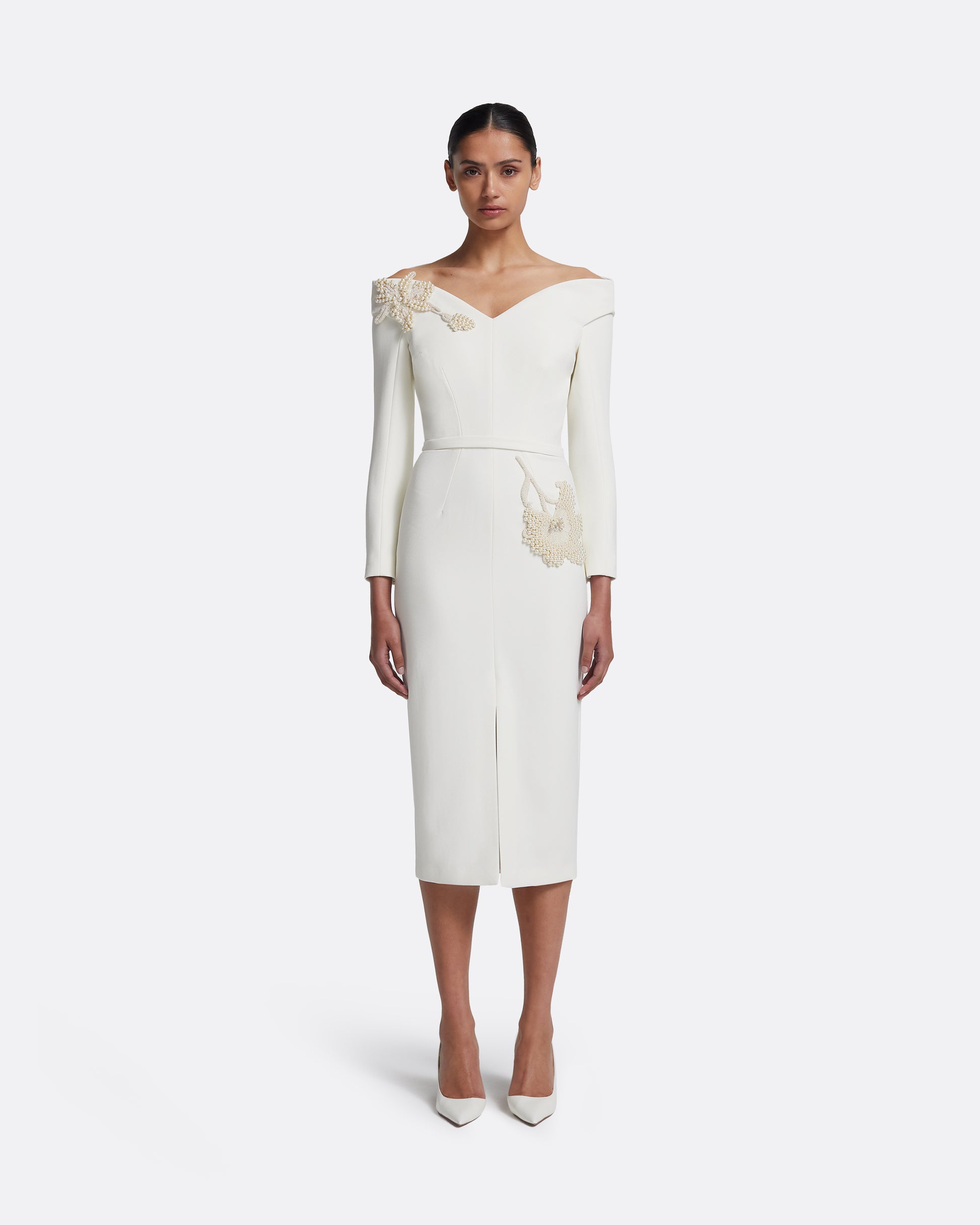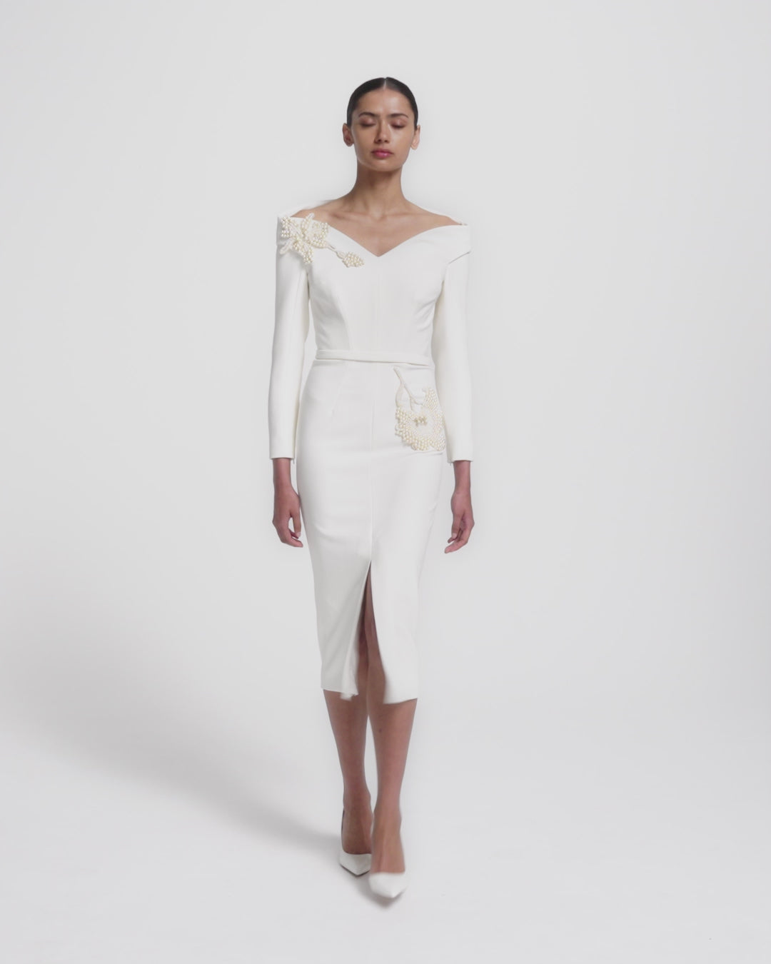 Asuman Midi Dress in Ivory with Pearl Embroidery