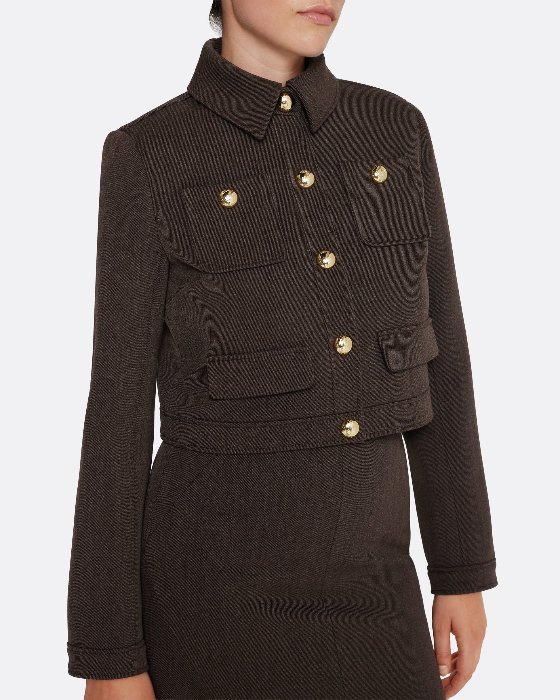 From the Spring Summer ’26 collection, the Darby Jacket in soft brown brings a sense of structure to the everyday. Defined by its clean lines and sharp collar, the piece is finished with gold-tone buttons and front patch pockets for a subtle, tailored touch.
