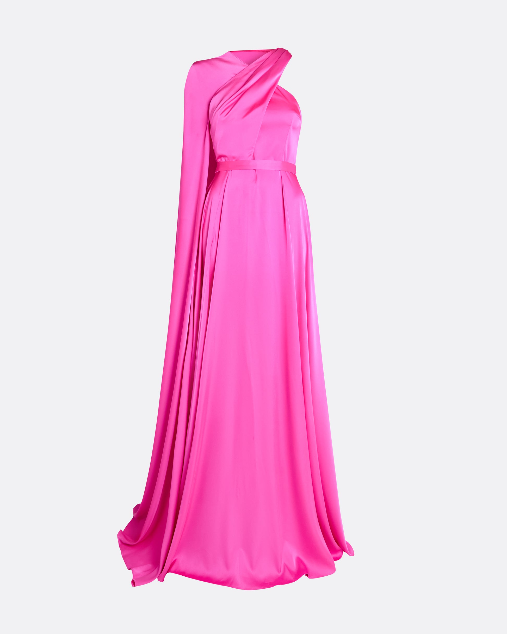 Single floor length caped sleeve gown with halterneck detail in beverley.