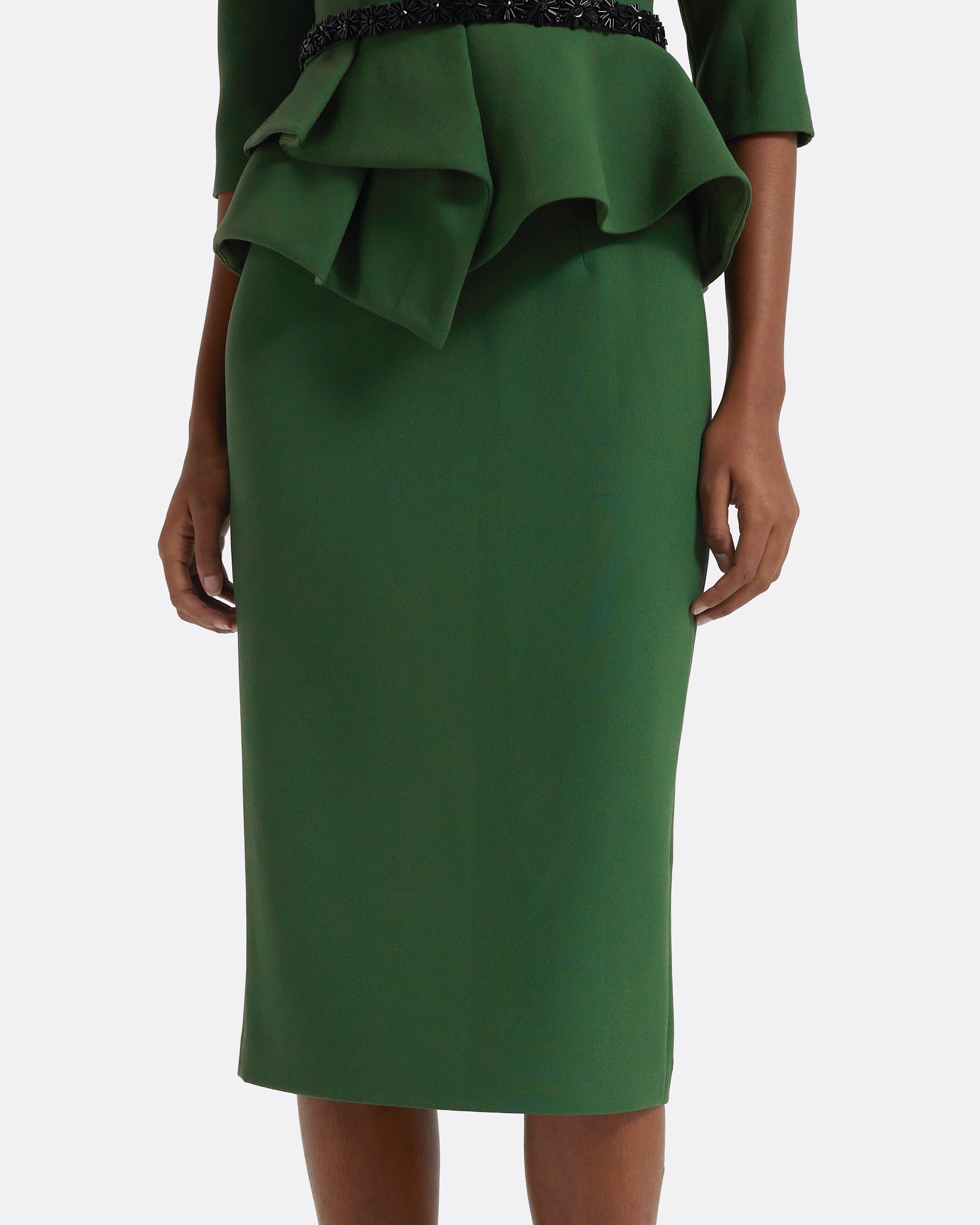 From the Resort '26 collection, the Hokuku skirt in Moss Green offers a refined and flattering silhouette. The pencil shape creates a streamlined profile, making it a versatile piece that complements both tailored and relaxed looks.