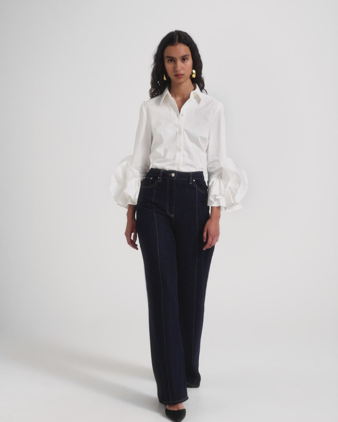 From the Pre-Fall ’26 collection, the Joanne Shirt in ivory is a cotton shirt designed for elevated daywear and refined everyday styling. Cut to a clean silhouette, it features ruffle sleeve detailing that adds soft movement and a feminine finish.