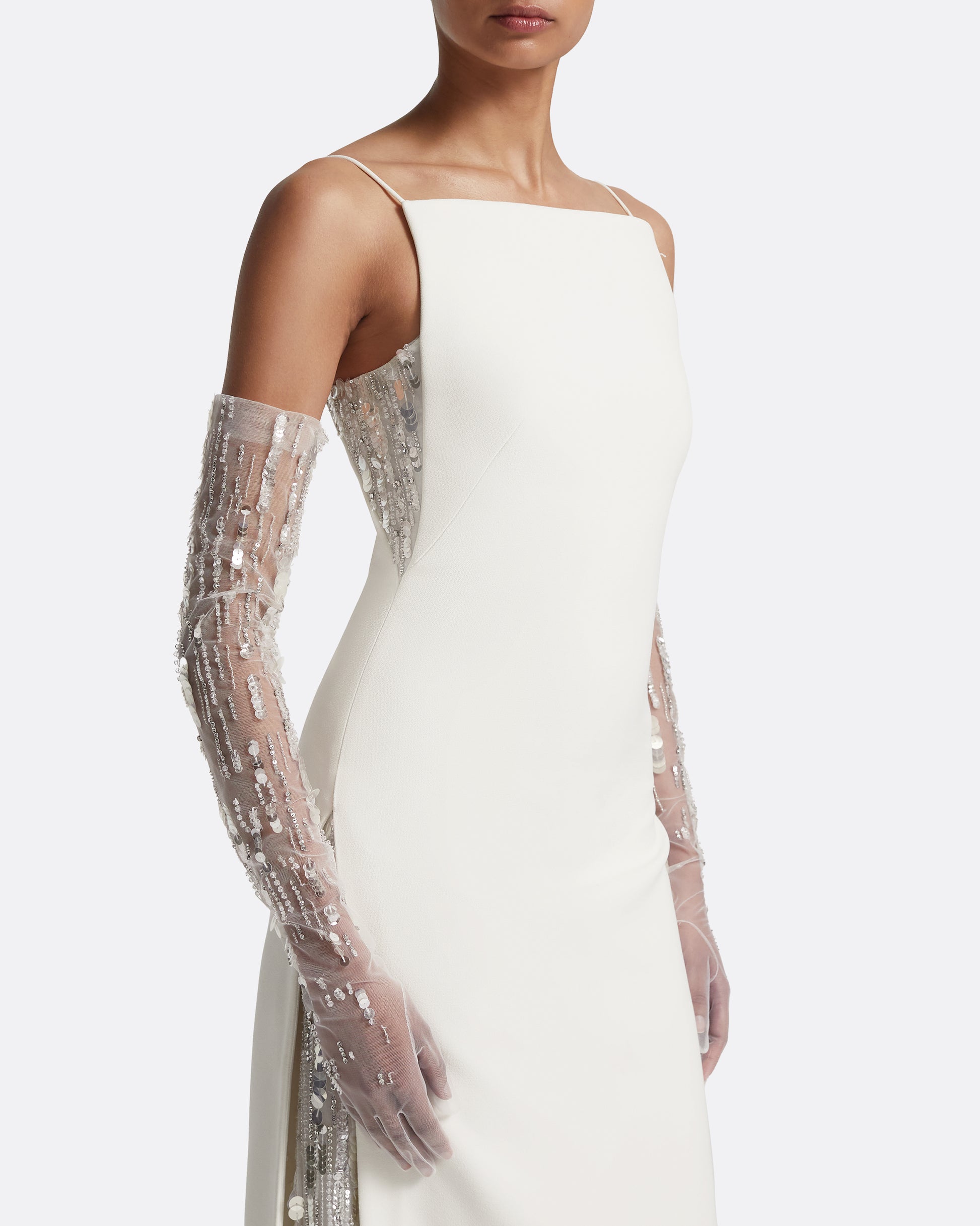 Styled with the Astin gloves in ivory and Galin embroidery. Sold separately. Fits true to size. Model is 175cm | 5'9" and wearing a FR36