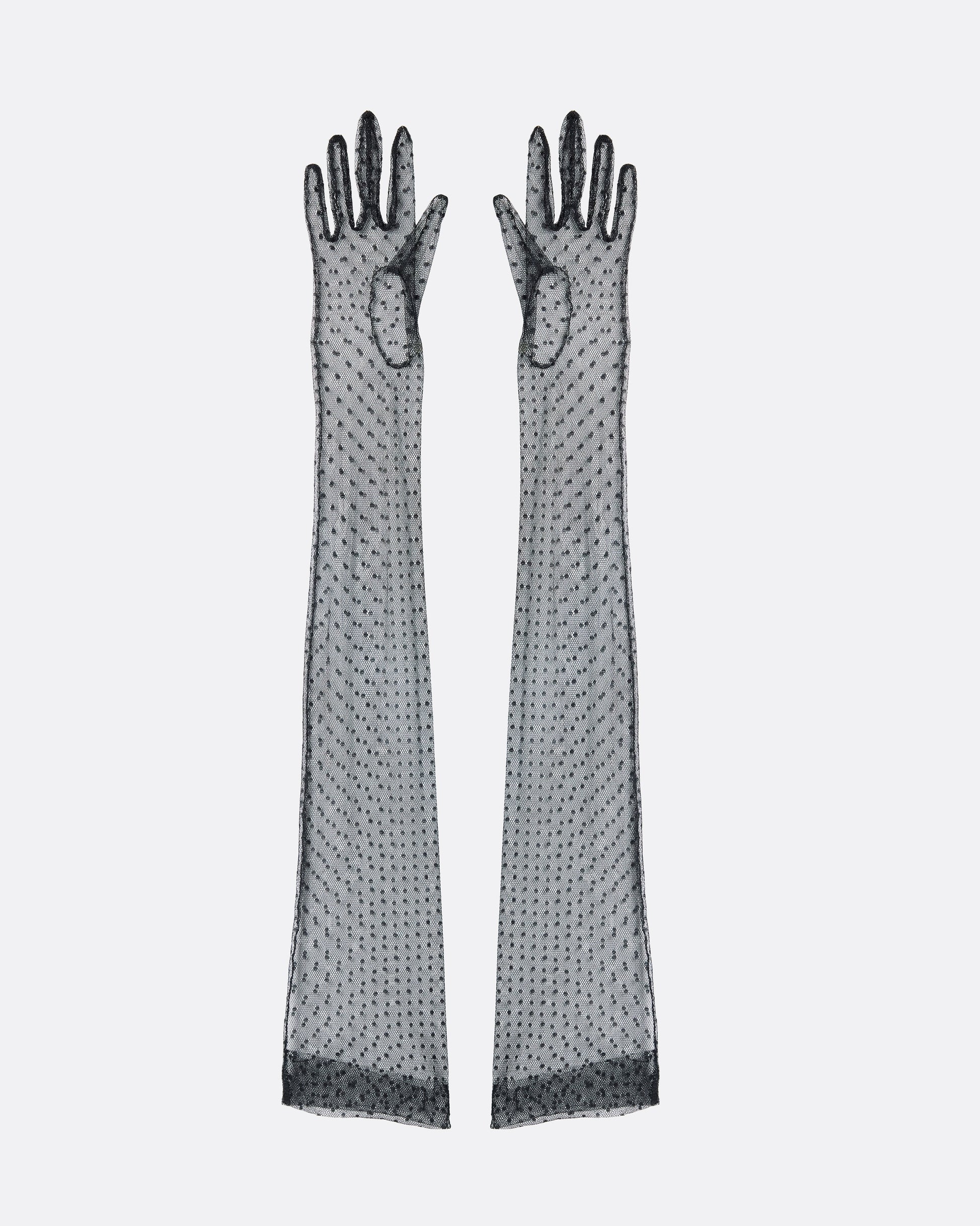 Long Gloves In Black Dotted Tulle