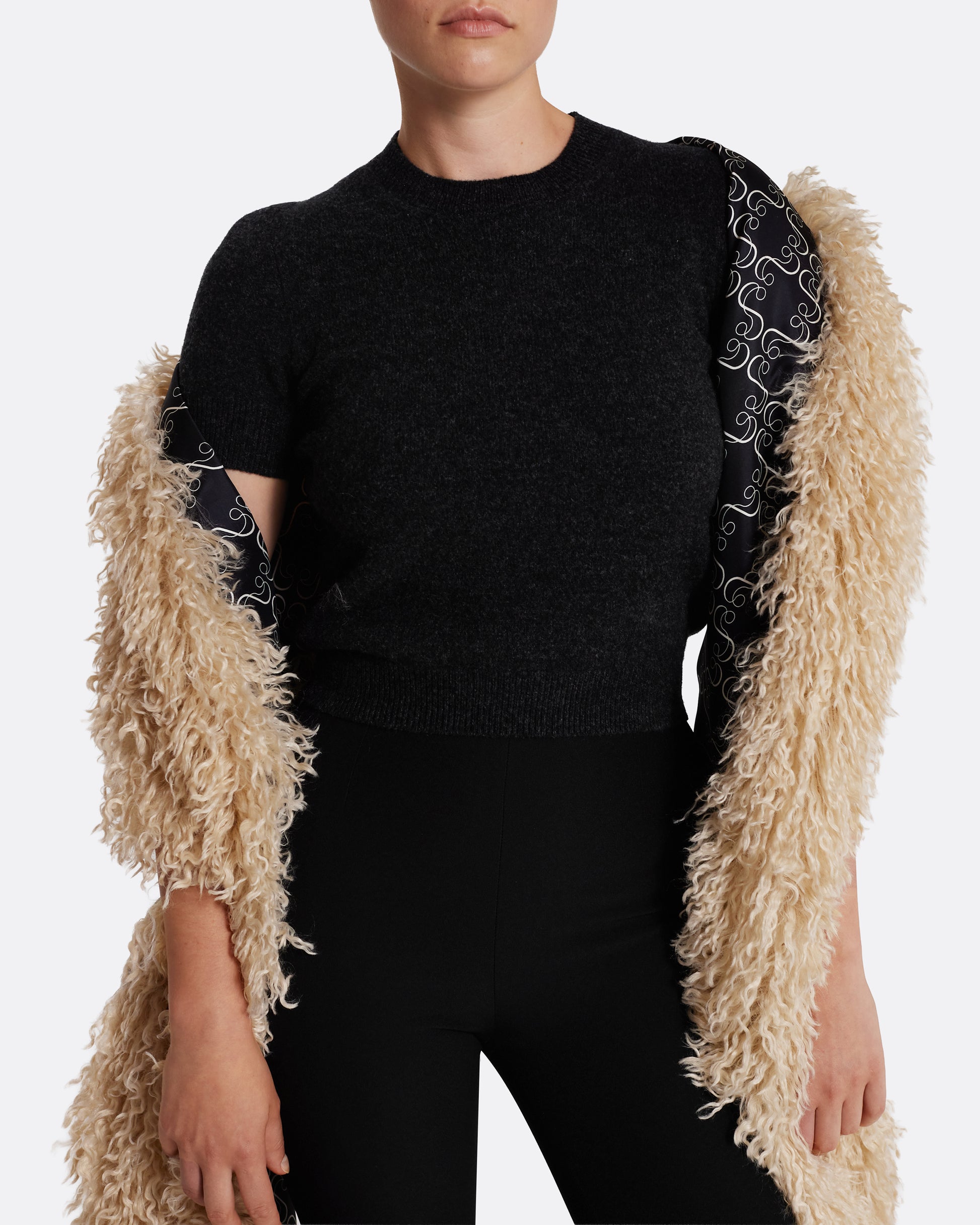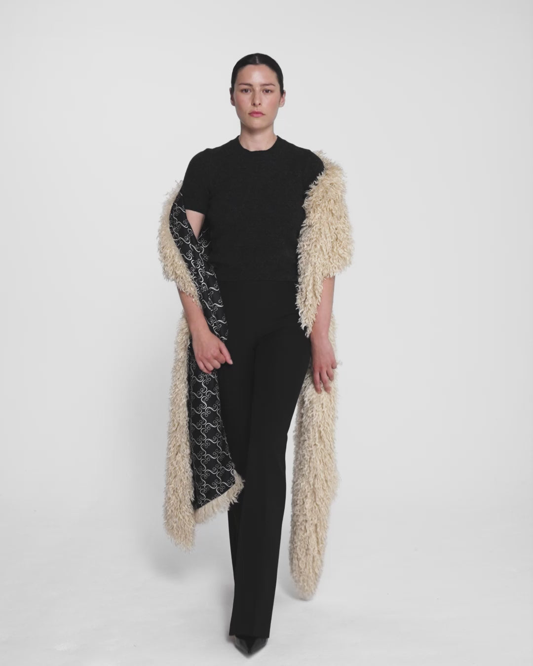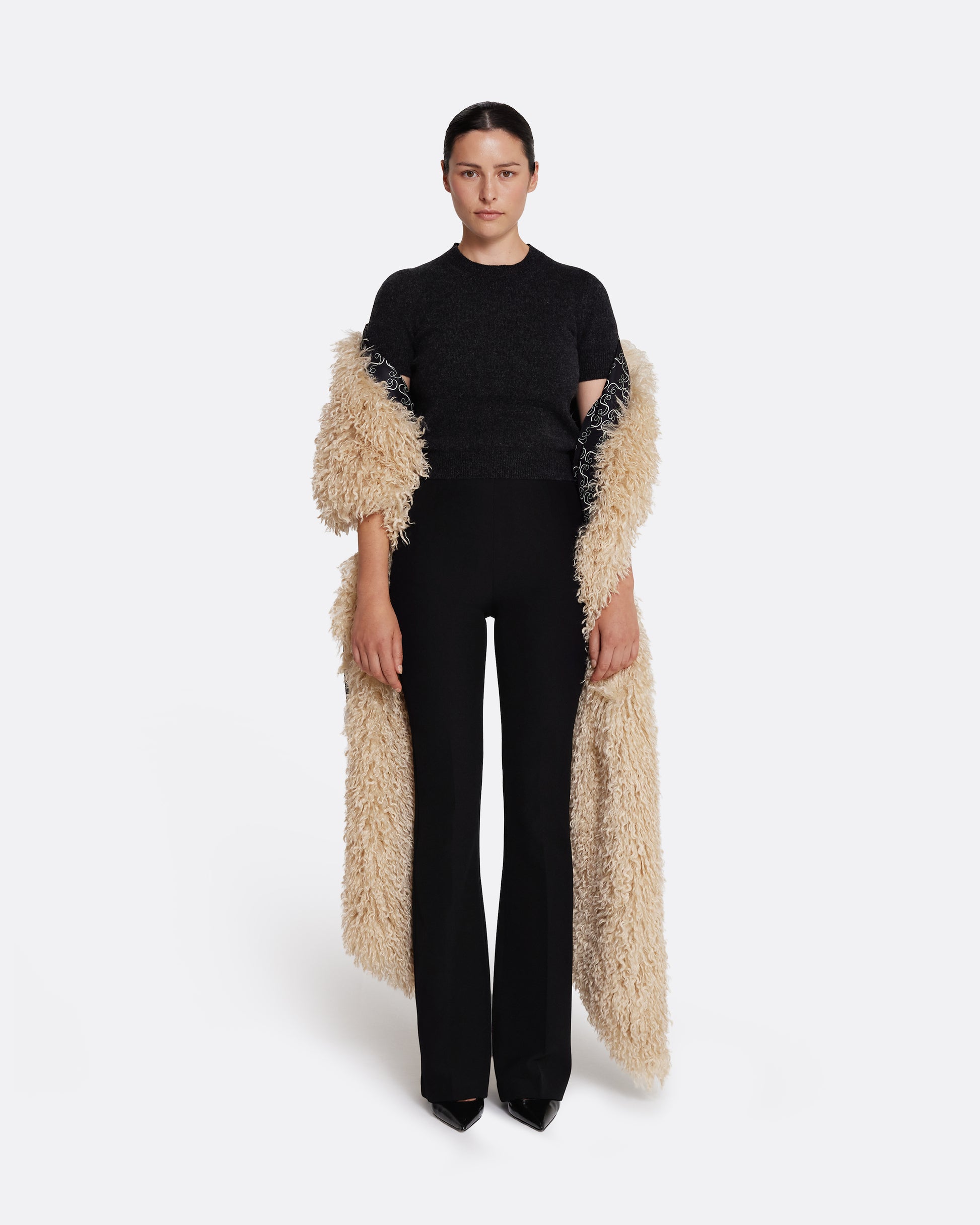 Styled with the Zade top and Alexa trousers in black. Sold separately. Fits true to size. Model is 175cm | 5'9" and wearing a FR36 Faux Mongolian Fur: 85% Recycled Polyester, 15% Polyester.