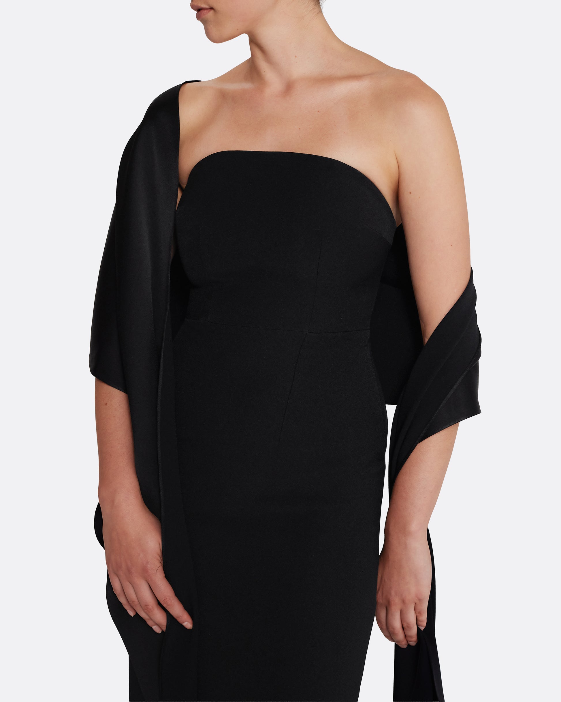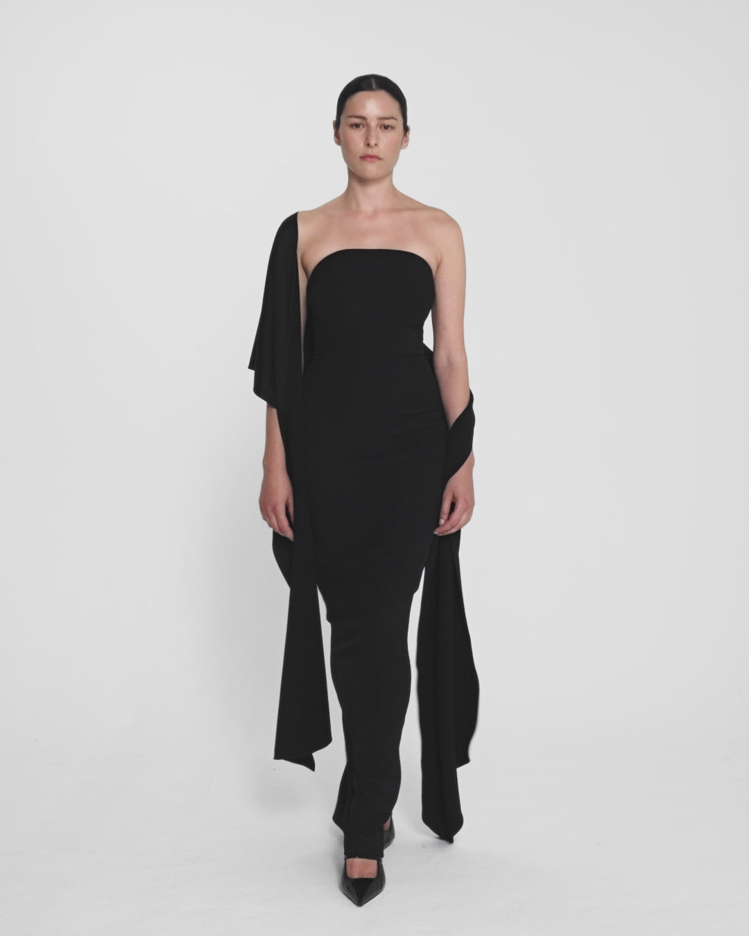From the Spring Summer ’26 collection, the Long Shawl Scarf in black reimagines classic evening accessories through a sculptural lens. Cut to an elongated shape, its clean lines and generous volume offer a bold yet understated accent.