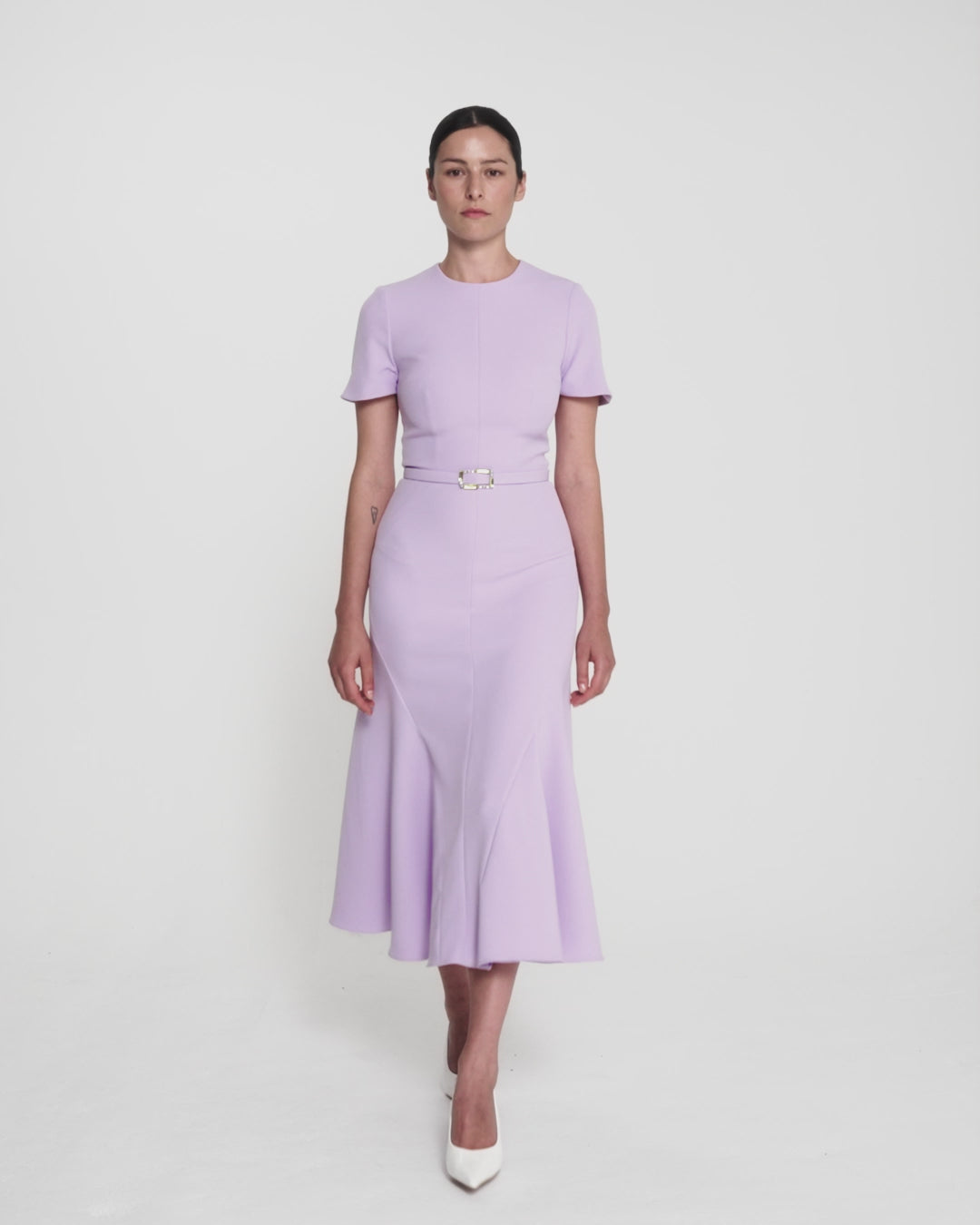 From the Spring Summer ’26 collection, the Luisa Midi Dress with Bertha belt in verbena with gold offers a clean, fluid line with a softly structured feel. The Bertha belt introduces gentle definition, grounding the look with clarity and restraint.