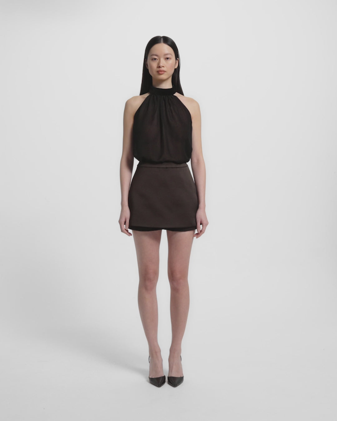 From the Autumn Winter '25 collection, the Matilda skort in peat brown refines everyday structure with a contemporary twist. A classic mini design reimagined as a skort, it offers ease and attitude in equal measure.