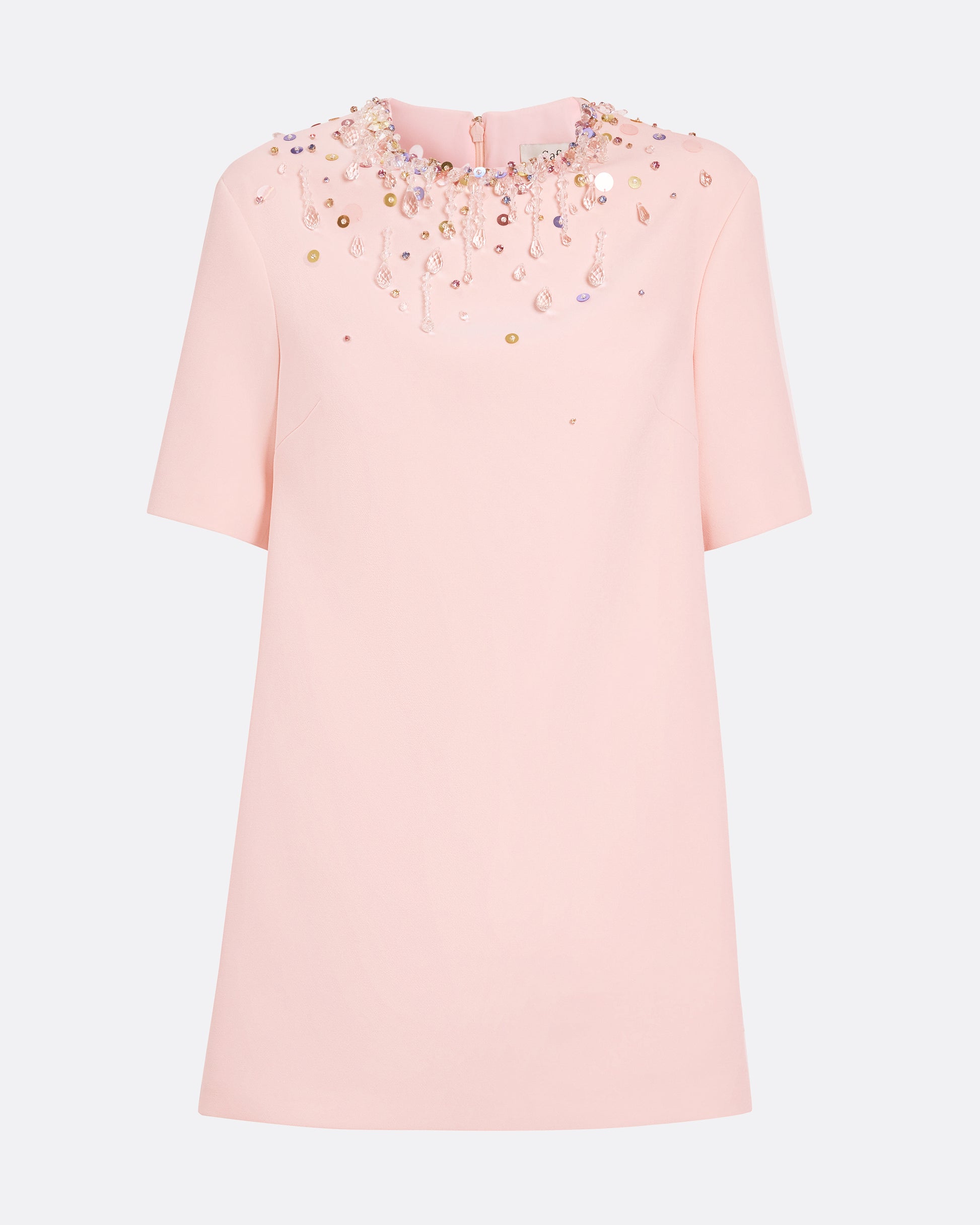 Ripley Short Dress in Pale Pink with Multi-pastels Embellishment
