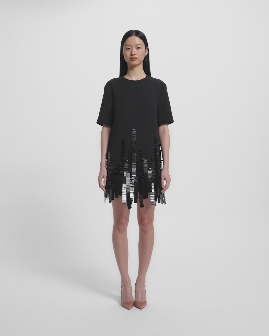 From the Autumn Winter '25 collection, the Ripley dress in black reimagines the mini with tonal intensity. Clean lines and considered proportion define its quietly bold presence, balancing restraint with impact.