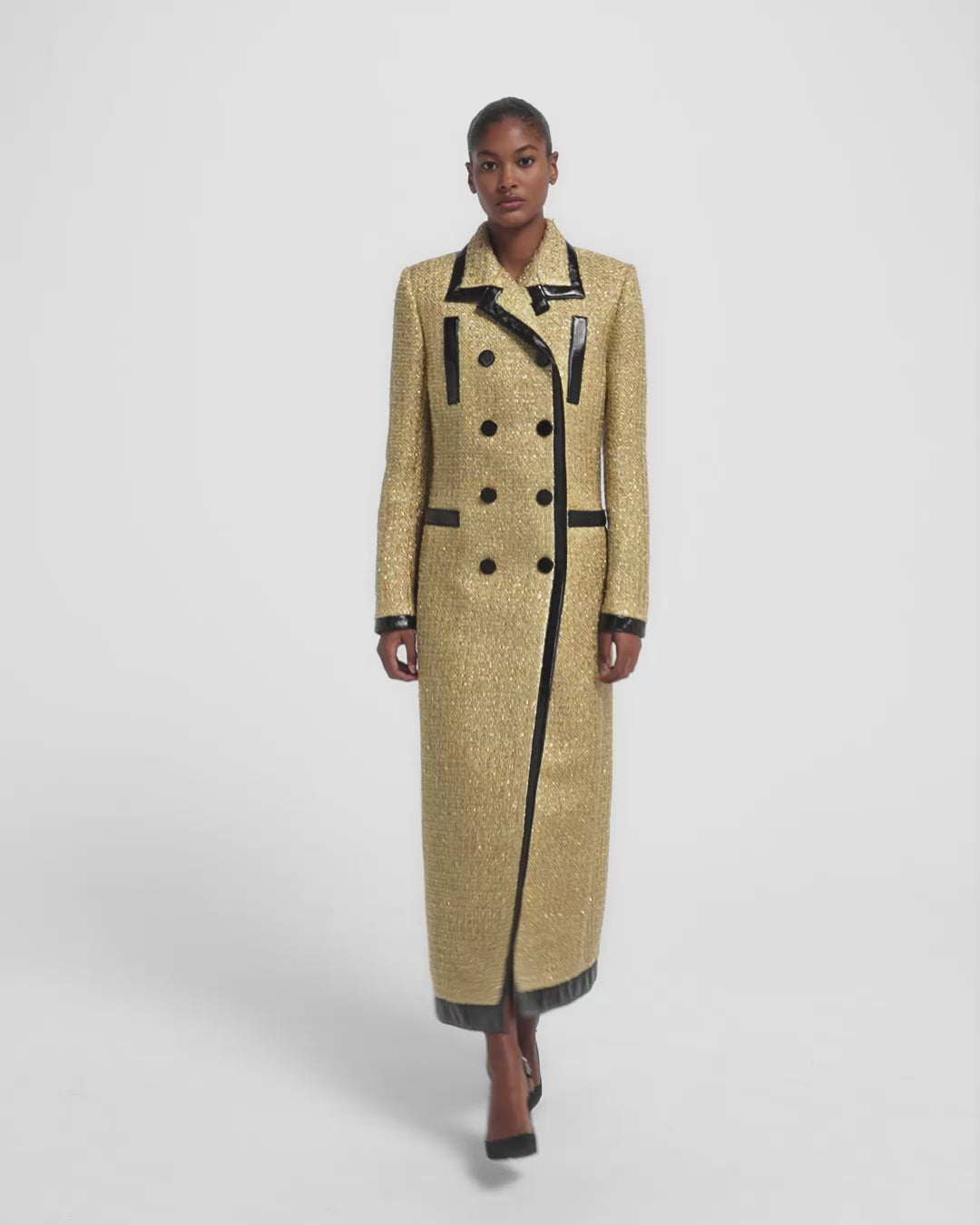 From the Resort ’26 collection, the River jacket in black on yellow gold introduces a dramatic approach to outerwear. With strong shoulders, a structured waist, and a sweep of monochrome contrast, it balances classic codes with modern precision.