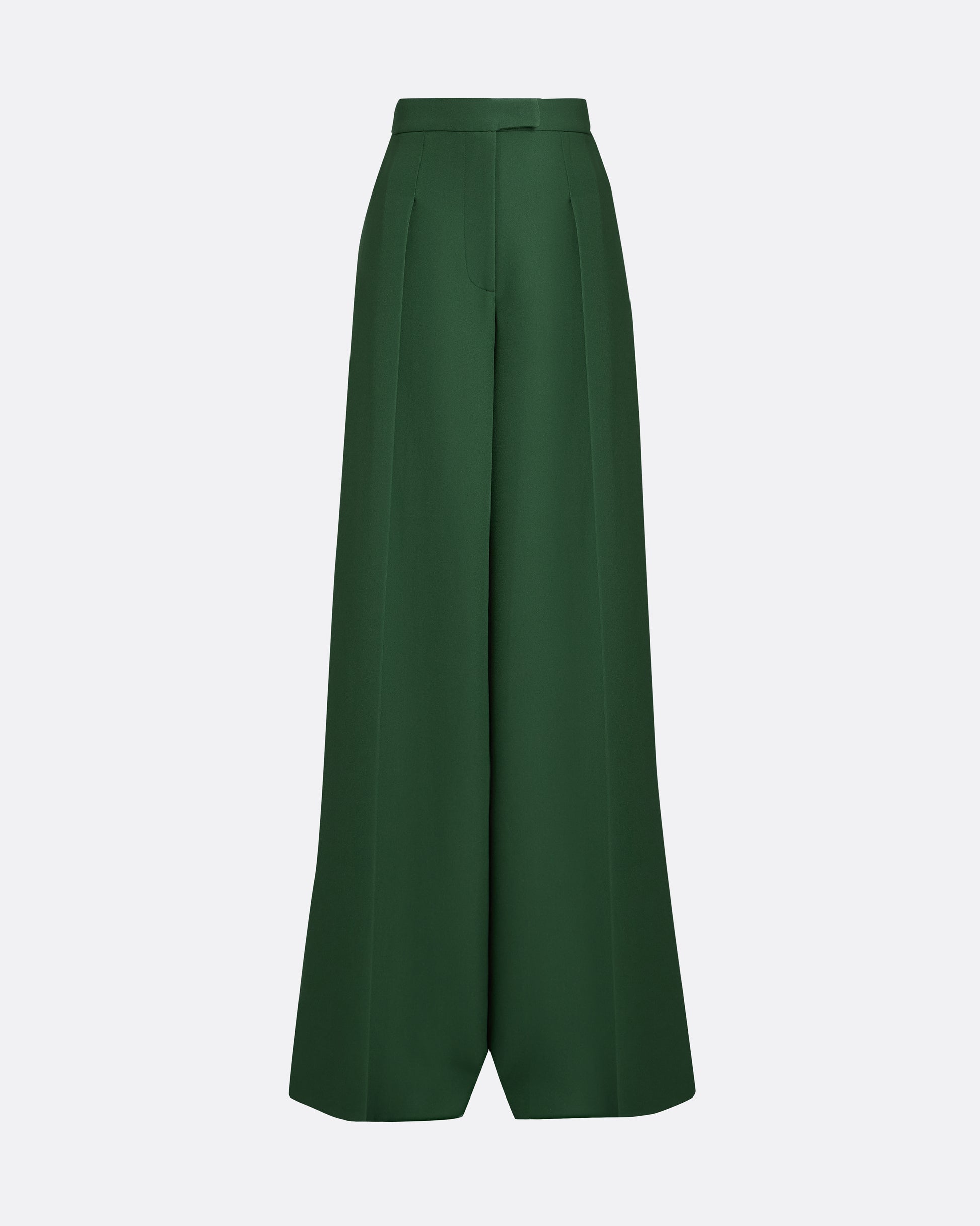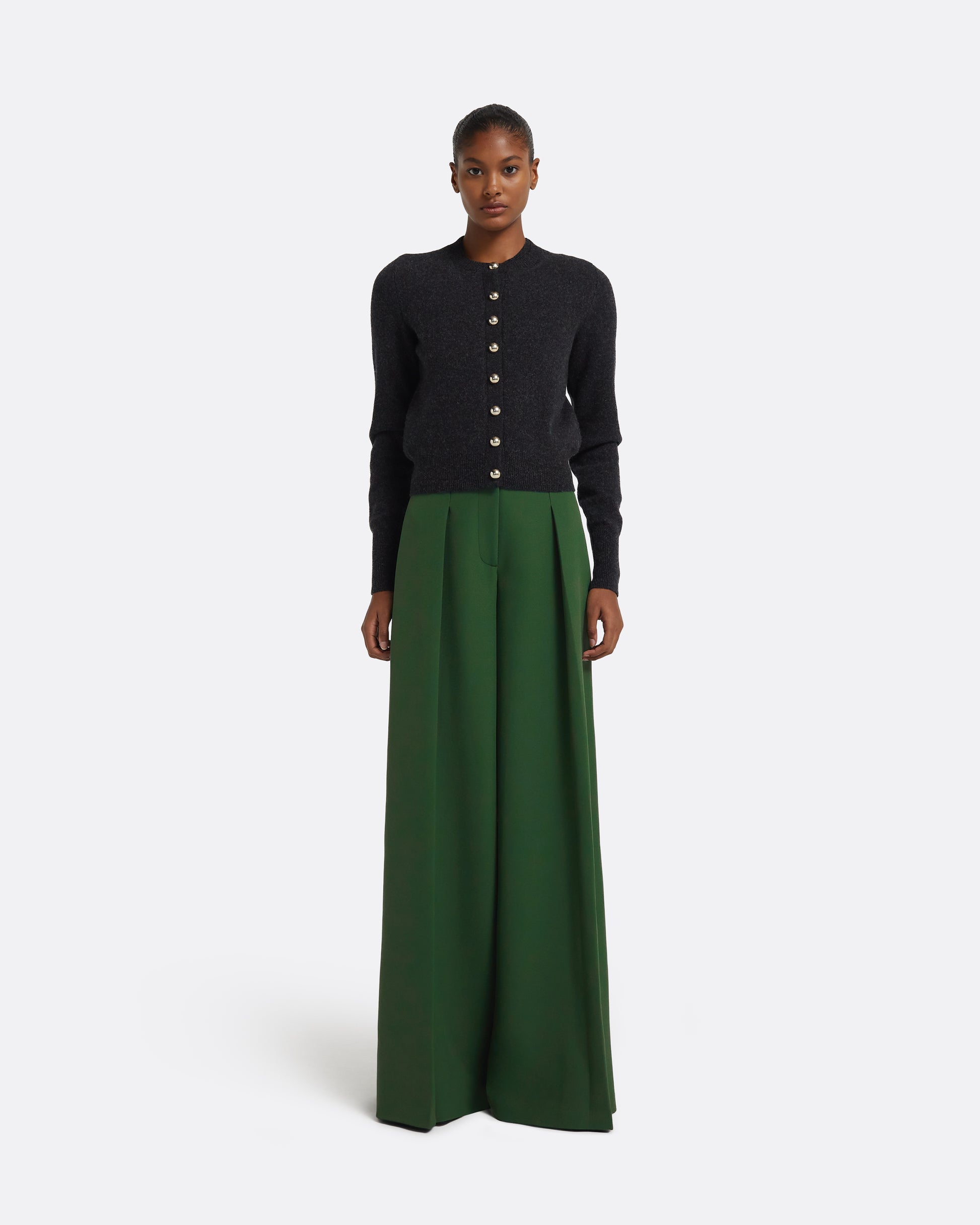 From the Resort ’26 collection, the Tanner trouser in moss green embodies ease with presence. Wide lines flow into a folded drape accent, giving the palazzo style a sculptural dimension.