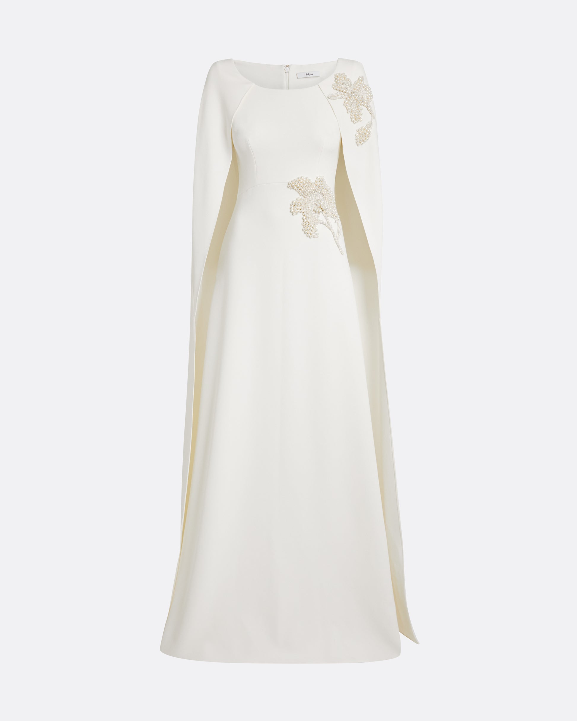• Full-length fitted cape gown