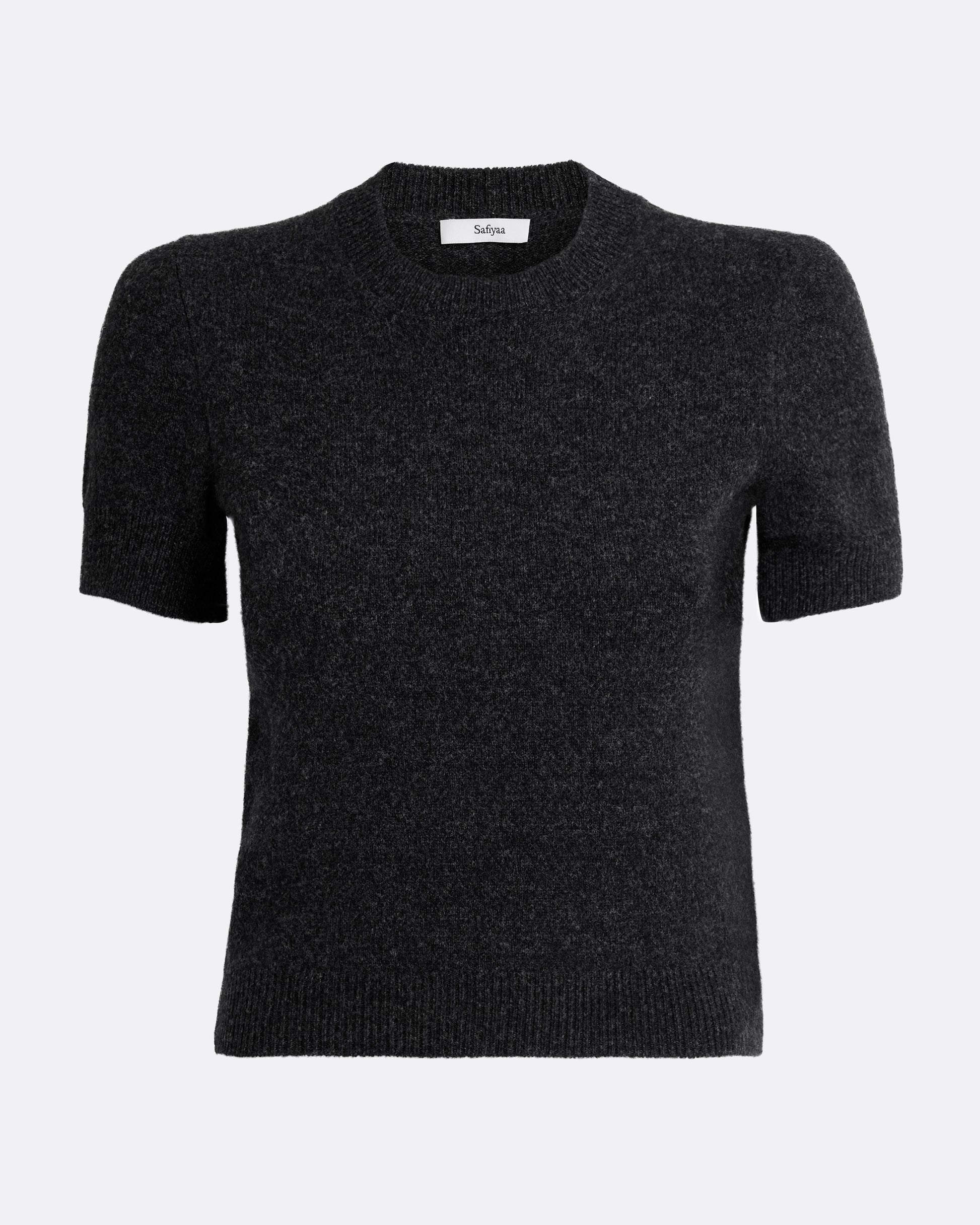 From the Resort ’26 collection, the Zade knitted t-shirt in black melange offers a refined take on everyday knitwear. Its neat fit and fine texture lend subtle polish to the understated design.